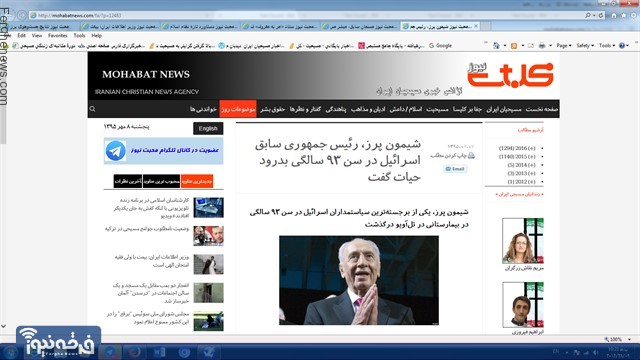 سایت محبت نیورز وابسته به سران تبشیری و سرمایه داری جهان که همواره اهداف شوم خود را آشکار ساخته این بار نیز با اشاره به دریافت جایزه صلح نوبل – جایزه ای که جنبه سیاسی داشته- توسط پرز تنها و تنها با چشم پوشی بر تمامی جنایت هایی که توسط وی صورت گرفت از تلاش وی برای ایجاد صلح سخن به میان آورد!!!